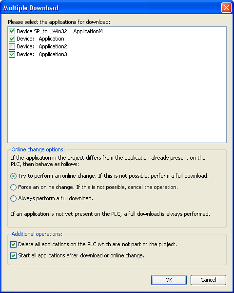 对于PLC上还不存在的应用,将会自动执行全下载。