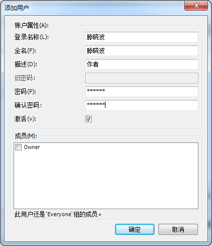 “激活”:如果这个选项被激活,用户权限是有效的。如果这个选项没有被激活,用户不能登录。如果登录次数超过限定的错误次数,那么此账号可能被自动关闭。